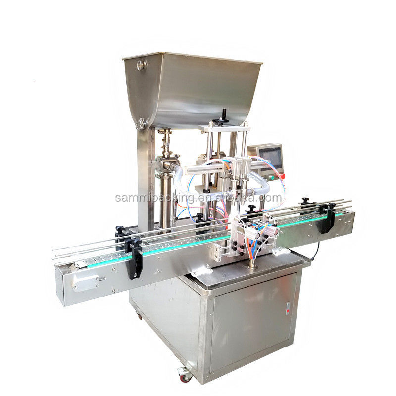 Cette machine est une machine automatique à double tête de remplissage de piston de pâte et de liquide, elle est sûre à utiliser.Et la partie pneumatique adopte les composants pneumatiques de l'Allemagne FESTO ou AirTac aiwanLes matériaux de contact de la pièce sont en acier inoxydable 304 ou 316L. Avec une poignée de réglage du volume de remplissage, la vitesse de remplissage peut être réglée à volonté, avec une haute précision de remplissage.La tête de remplissage adopte une anti-fuite, anti-tireur et avec dispositif de remplissage de plongée.Peut remplir différents types de bouteilles, la gamme de remplissage de 5ml-5000ml peut être facultative.