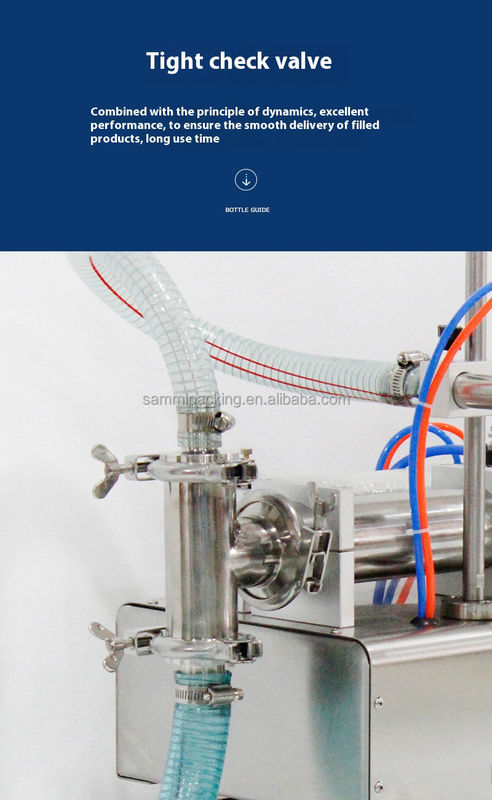 La serie GFC di filler a pistoni della macchina di riempimento semiautomatica, azionata da un cilindro e un pistone realizzato con materiali con valvole a cinque vie, controlla il flusso dei materiali,e l'interruttore a canna magnetica di controllo del cilindro percorso può essere regolato volume di riempimento.