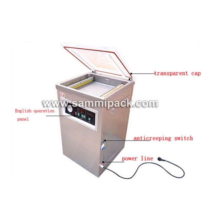 Вакуумная пищевая упаковочная машина характеризуется автоматической обработкой пылесоса, уплотнения, печати, охлаждения, которая используется в вакуумной упаковке пищевых продуктов, фармацевтических, водных,химическая и электротехническая промышленность.