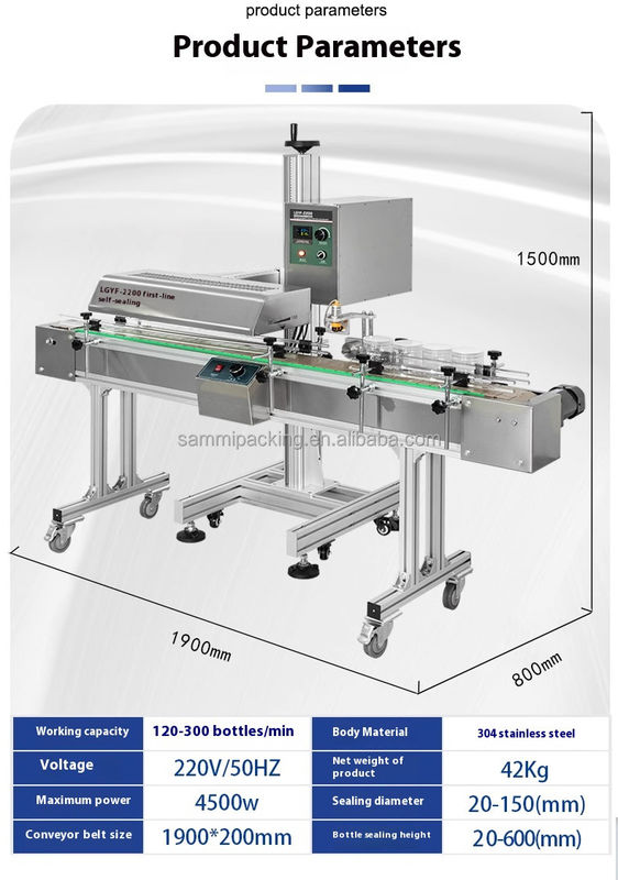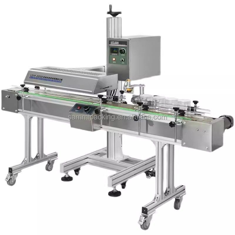 Suitable for sealing flat round screw cap on glass bottles or plastic bottles. This induction sealing machine is not suitable for metal containers, cover without screw. And the cap dia. is between 20mm-180mm for option. It's suitable for the big production factory.