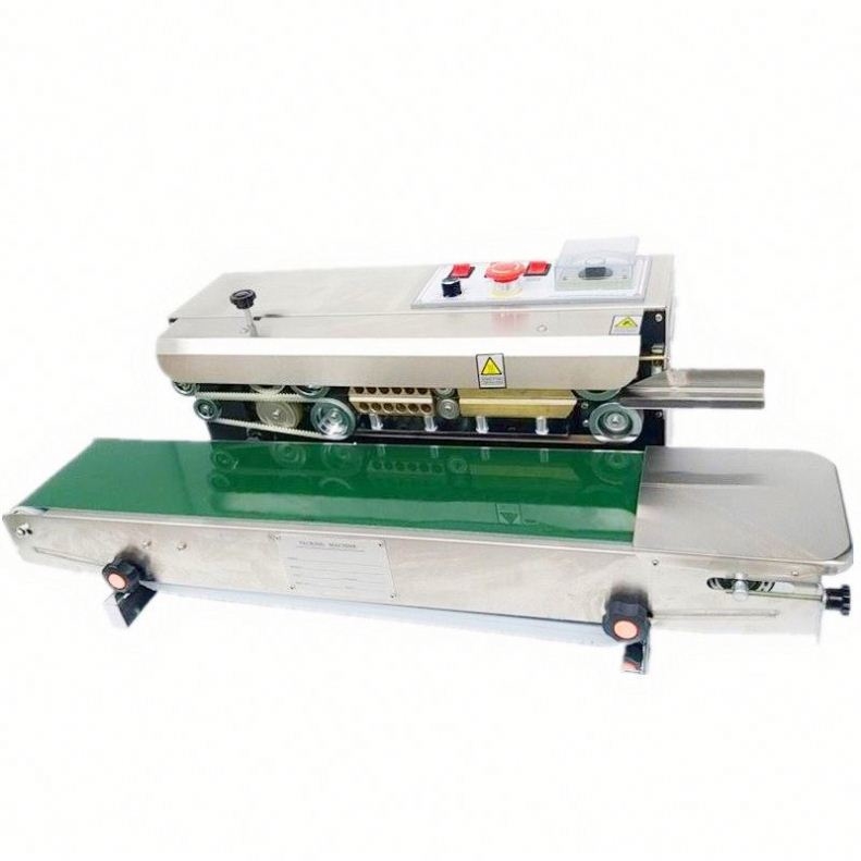 Sealing belts are oriented horizontally to allow for easy access and high throughput