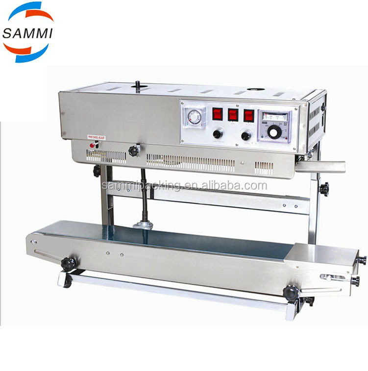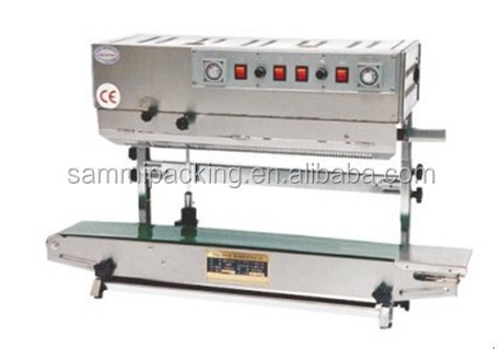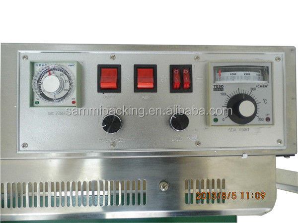FRD-1000 Solid-ink codiong band sealer is a new model of automatic plastic film sealing machine, which integrates color printing, sealing, continuous transmission of products, with clean and bright pattern on the sealing part, color selectable, instant printing and instant dry, and convenient to change the characters.