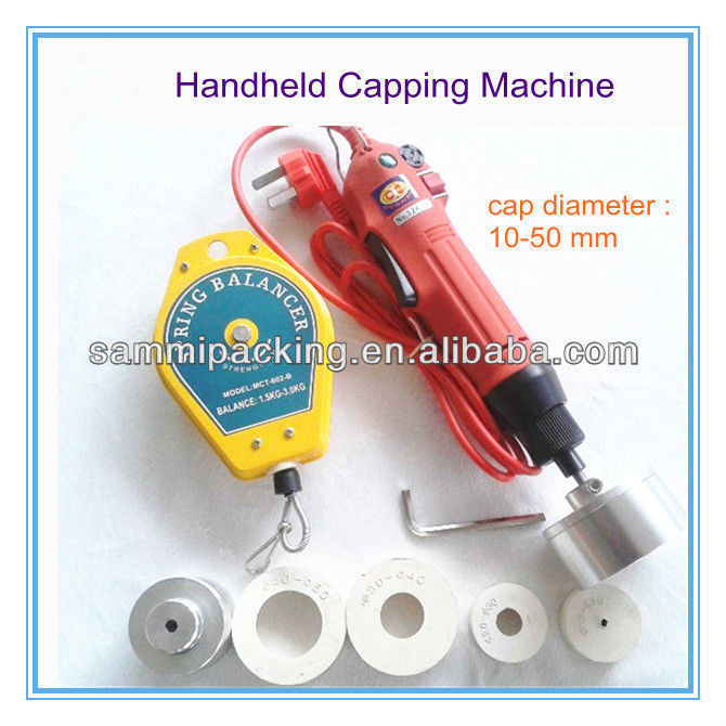 Hand-held electric Capping Machine easy to carry, can be easily used to tighten loose, or spin a variety of caps. The adjustable clutch can effectively avoid the cap damage and reduce the wear and tear inside the plug. Once the cap is fully tightened, the machine automatically stop rotating head that you can cap the next operation.