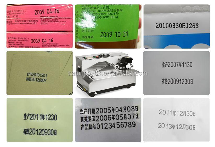MY-380 Automatic dry solid-ink coding machine suits for printing labels on the surface of paper, non-ferrous plastic film and aluminum foil. It applies advanced dry-ink roller for printing and can make the words be printed clearly and uneasy to decay and change. The letters/numbers sizes of this coding machine are available with 2mm, 2.5mm, and 3mm. You can choose the size you want.