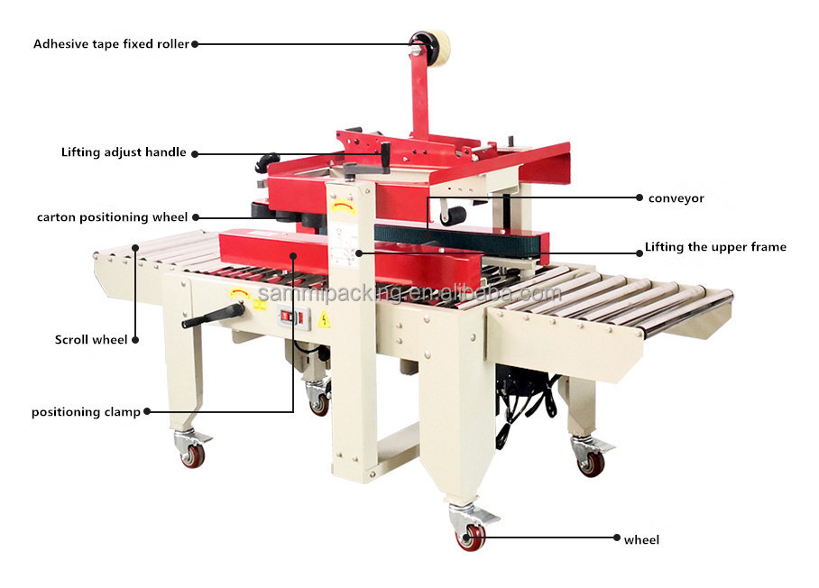 The sealer is maily used for household electric appliances, textile, foods, general merchandise, medical, cheemical etc. Industries to seal and packcartons in the way of by-itself or being fitted with the production lines. Adhensive bands are used to seal cartons with the ability to do both up and down sealings in one time, economical, fast and easy toregulate. The product packed in can be made much more impressed with the word-printed band used.