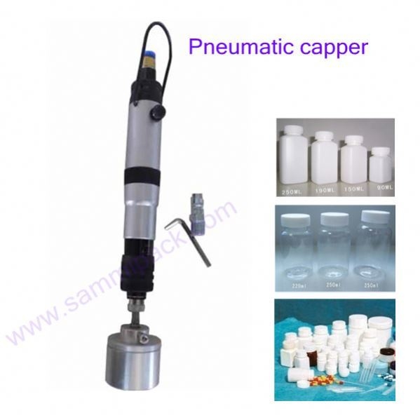 Hand-held pneumatic capping machine widely applicable to any thread of open or tighten screw cap, it has a wide range of screw cap from bottle height, shape, size, weight and unscrew cover can twist the cap, easy operation, low fault rate low prices, and other features, is the best tighten screw cap...etc. Especially suitable for large bottle, and heavier or bottle shapes, or lid specification more bizarre twist, often change of covering.