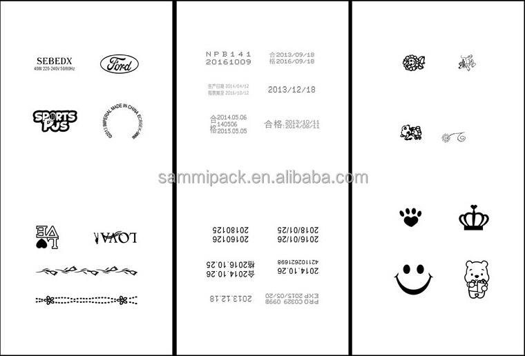 This machine can print date,batch number and simple logo etc. on various bottle,cans,cups,glass,mental surface, good printing effect and low printing cost,can customize the plate as per customer,s special needs.
