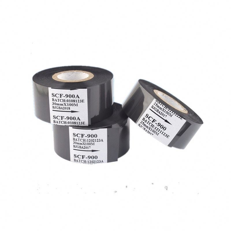 bán nóng 25mm 30mm 35mm đen nhựa nhiệt dán ruy băng cuộn cho thời hạn hết hạn máy in hoặc số lô mã hóa máy